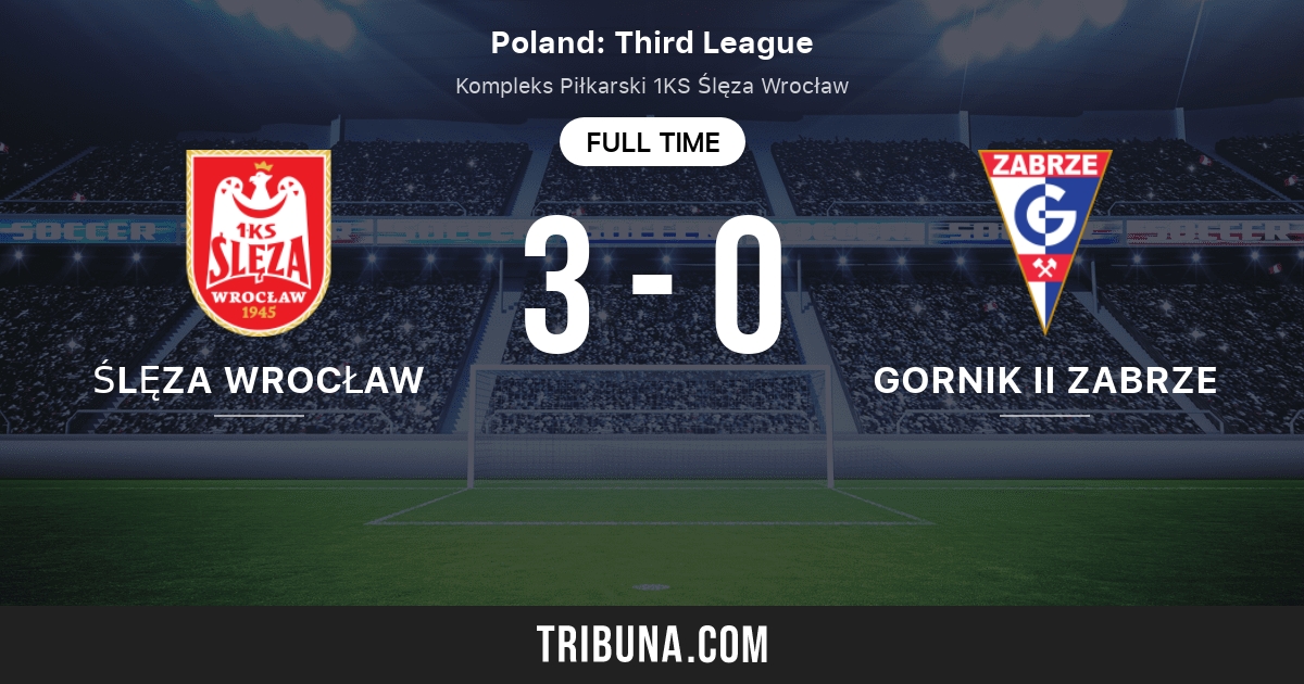 Currently Górnik Zabrze II rank 16th while Ślęza Wrocław hold 1st position. Ślęza Wrocław - Górnik Zabrze H2H statistics. 1 day agoŚlęza Wrocław Górnik Zabrze.